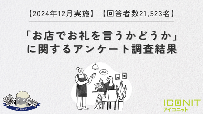 株式会社メディアシークが提供する累計3,600万DL超スマートフォンアプリ「QR/バーコードリーダー・アイコニット」内で、アプリユーザーを対象に毎日実施しているアンケート「アイコニット・リサーチ」において、「お店でお礼を言うかどうか」に関するアンケートを21,523名に対して2024年12月24日に実施いたしました。