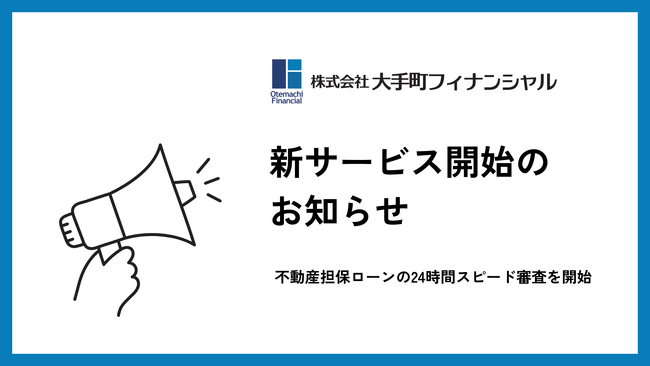 株式会社大手町フィナンシャル(本社:東京都千代田区、以下「当社」)は、不動産担保ローンにおけるお客様の資金調達スピード向上を目的に、「24時間スピード審査サービス」を開始いたしました。