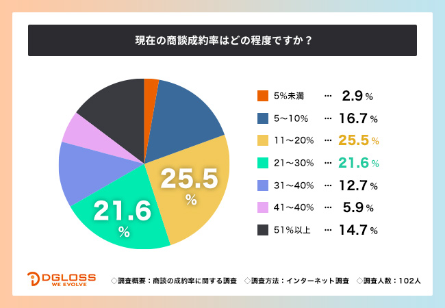 株式会社ディグロス(本社所在地:東京都港区、代表取締役:大村 剛)は、普段から商談を行っている全国20~60代の男女を対象に、商談の成約率に関する調査を実施しました。