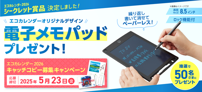 「エコカレンダー 2026」のシークレット賞品が決定!オリジナルデザインの電子メモパッドをプレゼント