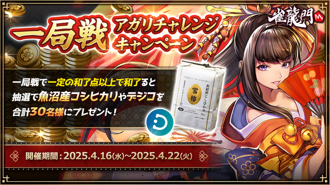 『雀龍門M』デジコや魚沼産コシヒカリが抽選で当たる「一局戦アガリチャレンジキャンペーン」開催!一局戦をプレイして豪華景品を狙おう!