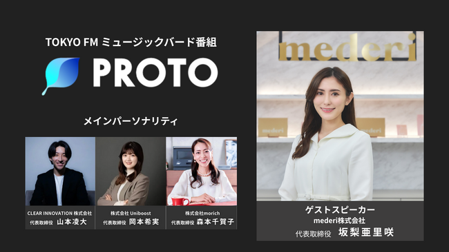 TOKYO FM ミュージックバード番組「PROTO」 mederi代表 坂梨 亜里咲の出演が決定!