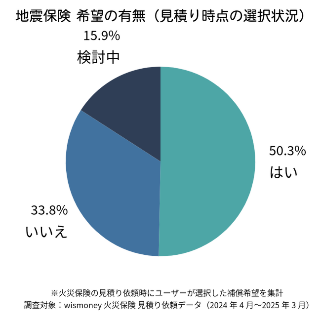 調査では、**「地震保険を希望する」と回答したユーザーが50.3%**と過半数を占めました。