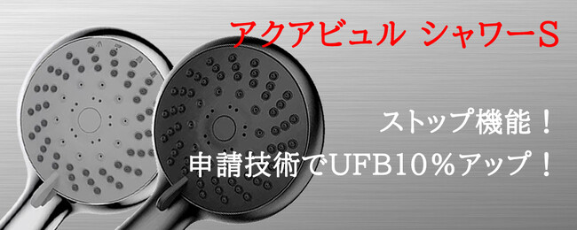 お客様の評価、口コミがきっかけで進化したアクアビュルシャワーS。シャワーヘッド発売以来、お客様の要望にお応えしたくて、これまでの機能にさらなる改良を重ね、一時止水できるストップ機能を兼ね備えたシリーズ最高傑作が誕生。特許申請技術でウルトラファインバブル量が10%アップしました。