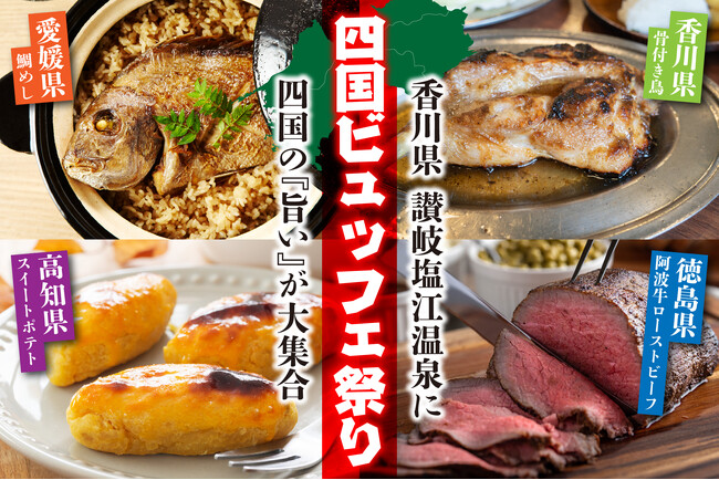 香川・高知・愛媛・徳島のご当地グルメが大集合! リブランドオープン讃岐塩江温泉で"四国ビュッフェ祭り"が開催決定!