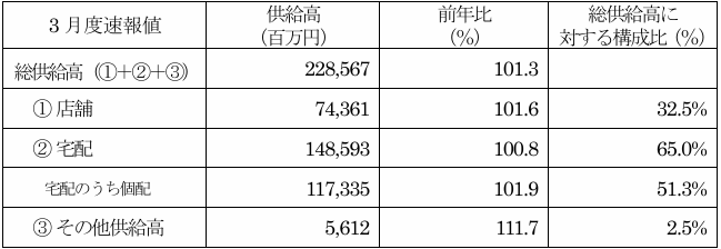 〇3月度の総供給高は、101.3%で店舗、宅配ともに前年超えでした。