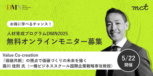 2025年度から新しい「DMN(デザインマネジメント・ネットワーク)」が始まりますが、このたび、オンライン開催する講座の中から5講座限定で、オンラインモニターの無料招待枠を設けることになりました。