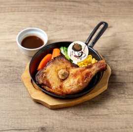 がブリチキン。の看板メニューである自慢の特製スパイスが効いた骨付鳥に、「いきなり!ステーキ」秘伝のステーキソースとオリジナルペッパーペーストを使用。外はパリッと香ばしく、中は肉汁あふれるジューシーな仕上がりで、コク深い旨みとスパイスの効いたソースが、骨付鳥の美味しさをさらに引き立てる、ワイルドなコラボ限定チキンステーキメニューです。