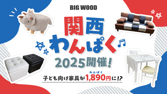 兵庫県で家具のオフプライスストア「ビッグウッド」を5店舗FC展開する株式会社ブライダル・ボックス(所在地:兵庫県明石市、代表取締役社長:石原隆志)は、ビッグウッド伊丹店にて、わんぱくな子ども向け商品を¥18,900(税込)または¥ 1,890(税込)で提供する「関西わんぱく2025」を、2025年4月28日(月)~5月11日(日)まで、期間限定で実施します。