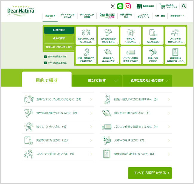 「ディアナチュラ」ブランドは、生活者の日々の健康を支える身近な存在になることを目指しています。今回リニューアルしたブランドサイトは、単なる商品紹介にとどまらず、健康的な生活のヒントを得られる情報コンテンツや、日々の食生活を見直すきっかけとなる機能を備えた“ブランドコミュニケーションの場”として位置づけています。