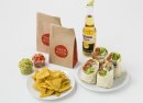アボカドたっぷりチキン&カーニタスポークのブリトー2種+チップス&ワカモレ・サルサソースのセット 3,470円 (イートイン 3,510円)