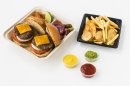 人気メニューの短角牛チーズバーガー2個をメインに、シュリンプココナッツフライとガーリックポテトチップスを組み合わせた、2名様用のピクニックセット。
