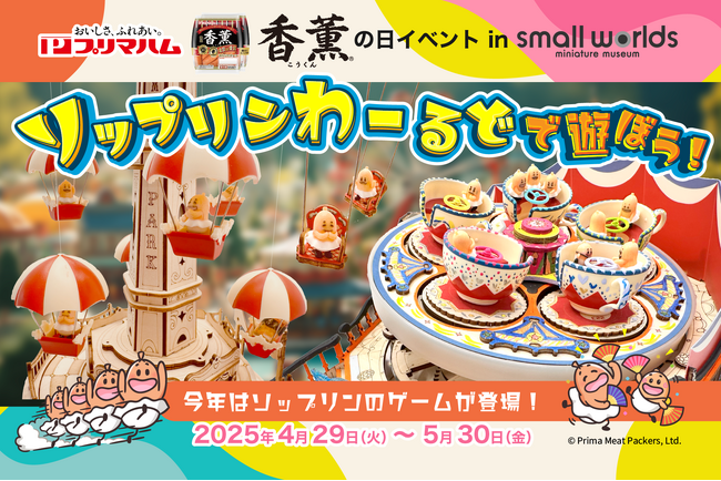 アジア最大級のミニチュアミュージアム「スモールワールズ」 では、オフィシャルパートナーであるプリマハム株式会社様とのコラボで「香薫(R)の日イベント~ソップリンわーるどで遊ぼう!」を開催します。今年はなんと、かわいいソップリンがゲームになって登場。他では手に入らないソップリングッズや香薫(R)あらびきポークがもらえるチャンスも。
