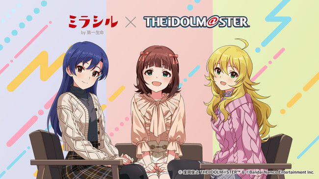 今回、アイドルプロデュースゲーム「アイドルマスター」とのコラボレーションにより、765プロダクションのアイドル・天海春香さん、如月千早さん、星井美希さんへの特別インタビューと、限定アクリルスタンドが当たる「ミラシル by 第一生命」無料会員向けキャンペーンを実施。さらに多くのお客さま、「プロデューサーさん(※『アイドルマスター』シリーズファンの総称)」との接点を創出いたします。