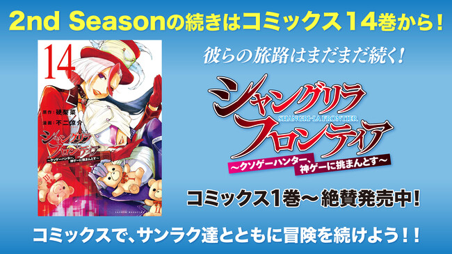 TVアニメ『シャングリラ・フロンティア』2nd Season 全25話の配信決定!本日4月25日から5月8日まで講談社が運営するYouTubeチャンネル『フル☆アニメTV』にて期間限定一挙無料公開。