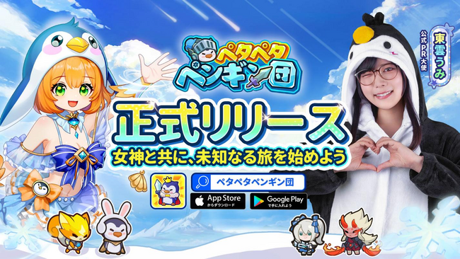 ローグライク要素を搭載したタワーディフェンスRPG『ペタペタペンギン団』本日正式リリース!無料3,000連ガチャプレゼント!東雲うみさんが公式PR大使に就任!