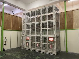 「鍵扉付きパレットラック」は、鍵付きのスチール製メッシュ扉を備えており、視認性・換気性・安全性を兼ね備えた設計となっております。これにより、管理責任の明確化と誤取扱いの防止を図り、作業現場のリスク低減とコンプライアンス強化に貢献します。