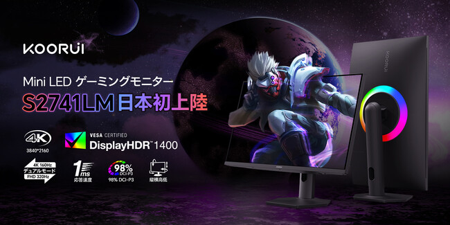 KOORUI(HKC JAPAN株式会社)は、量子ドットMini LED搭載の27インチ ゲーミングモニター「S2741LM」を2025年5月1日(木)よりAmazonにて販売を開始します。