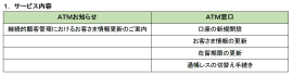 「+Connect」(プラスコネクト)はあらゆる手続き・認証をセブン銀行ATMで実現するサービスの総称です。その中に、お客さまがATMで取引きを行う際に、お客さまにお知らせしたい情報をATM画面に表示し、回答を収集する「ATMお知らせ」サービスと、これまで対面で行う必要のあった各種手続きを、原則24 時間365 日行うことができる「ATM窓口」サービスがあります。