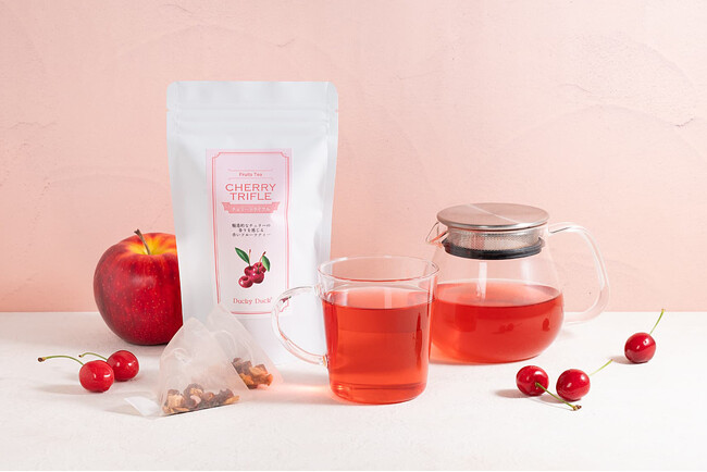 チェリーのフルーティーな香りに見え隠れする、甘く魅惑的な香り。アップル、ハイビスカス、ローズヒップ、チェリーをブレンドした目にも鮮やかな赤色が美しいフルーツティーです。