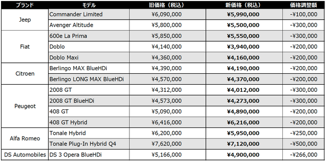 「昨今の不確実性の高い経済および社会の環境において、お客様にとって魅力あるブランド、魅力ある製品であり続けることを目指し、Stellantisジャパンが有する6ブランドの人気モデルを対象に、販売価格*(注1)の改定を実施いたします。