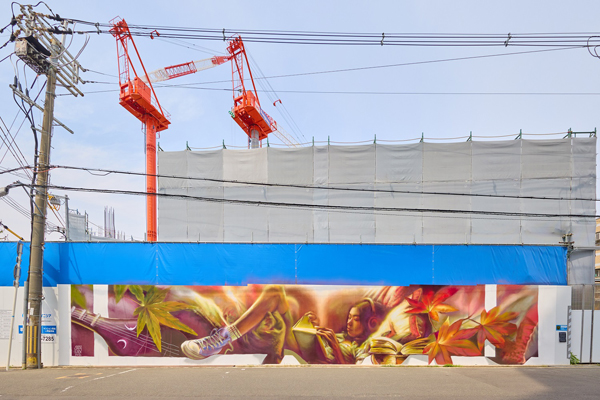 ドイツから来日したJack Lack氏によって、2025年4月17日(木)から仮囲いへのペインティングを開始し、4月25日(金)に完成・お披露目されました。