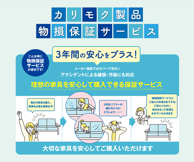 「カリモク製品物損保証サービス」について:https://e-karimoku.com/busson-service