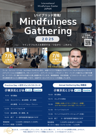 2024年に開催したGatheringを今年も開催します。メインスピーカーとして、ウィル・カバット・ジン先生をお招きしてのオンラインウェビナーも実施します。