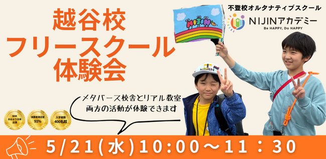 今回はリアル教室第一号【NIJINアカデミー越谷校】にて、フリースクール体験会を開催いたします。