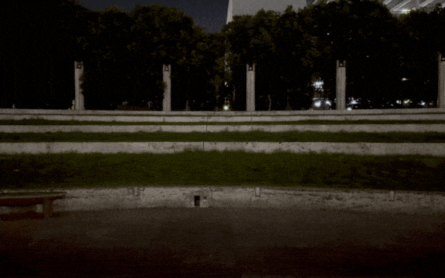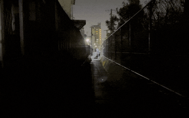 200メートル以上離れた建物にもしっかりと光が当たっているのがわかります