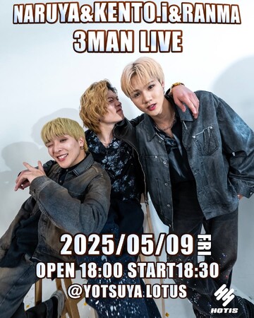 5月9日に四谷Lotusで開催される、株式会社HOTIS主催のイベント『NARUYA&KENTO.i&RANMA 3MAN LIVE』。