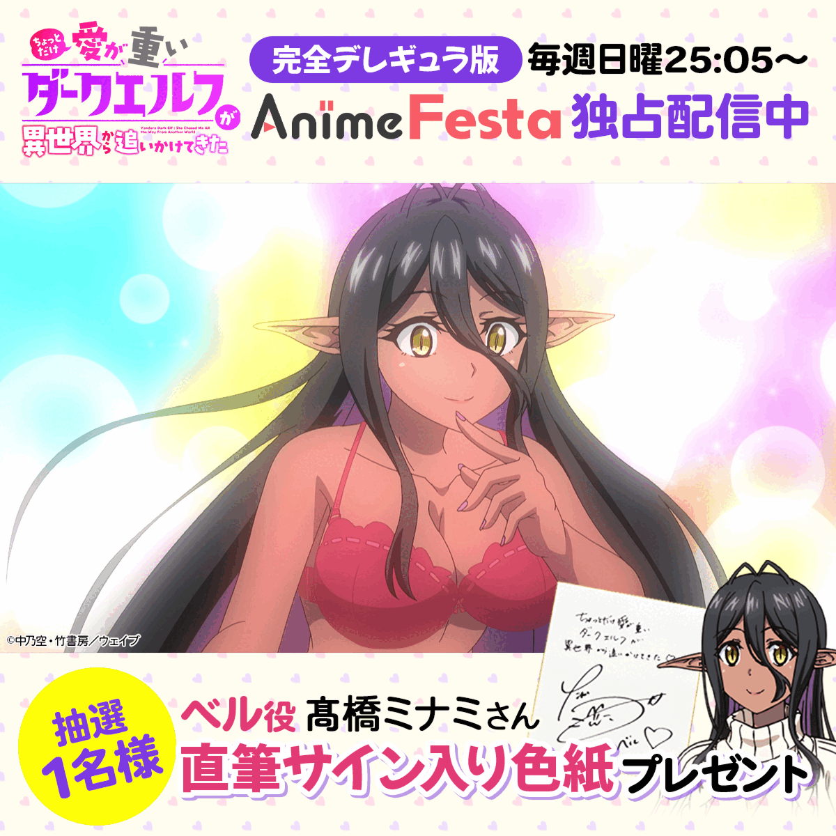 AnimeFesta単独独占配信中の春アニメ『ちょっとだけ愛が重いダークエルフが異世界から追いかけてきた【完全デレギュラ版】』放送折り返し記念!~声優・高橋ミナミさんのサイン色紙を抽選でプレゼント~