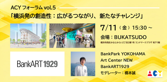 アーツコミッション‧ヨコハマ(略称:ACY、運営:公益財団法人横浜市芸術文化振興財団)ではACYフォーラムvol.5「横浜発の創造性:広がるつながり、新たなチャレンジ」を開催します。
