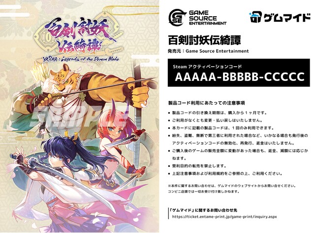 株式会社イード(本社:東京都中野区、代表取締役:宮川 洋)は、ブロマイド付きPCゲームのSteamキーコード販売サービス「ゲムマイド」にて、Game Source Entertainmentの『百剣討妖伝綺譚』を5月15日(木)より販売開始いたします。