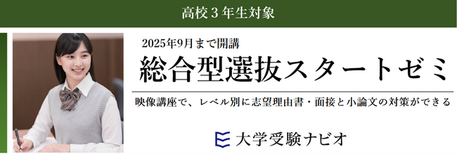 【大学受験ナビオ】高校3年生対象「総合型選抜スタートゼミ」、9月まで開講