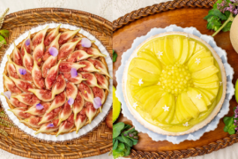 2020 年「第21回全国果樹技術・経営コンクール」で農林水産大臣賞を受賞した、天野イチジク農園で栽培されたイチジクの登場です!しっとりと焼き上げたリコッタチーズ入りのアーモンドクリームにカスタードと自家製イチジクジャムを重ね、ふっくらと大ぶりで甘みが強くジューシーなイチジクを一面に飾りました。仕上げのはちみつソースがイチジクの美味しさを引き立てます。エディブルフラワーと金箔でおめかしをした、名古屋栄オープン記念タルトです。