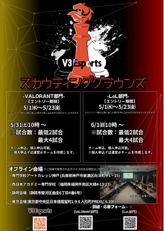 学校法人神戸学園が運営するプロeスポーツチーム『V3Esports』では、将来のプロ選手発掘を目的とした初の試み「V3 Esports スカウティング・グラウンズ」を開催いたします。