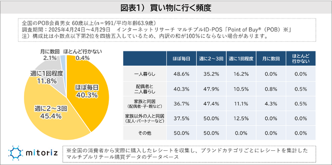 株式会社mitoriz(本社:東京都港区、代表取締役社長:木名瀬博)は、消費者購買行動データサービス「Point of Buy(R)(以下、POB)」の会員991人に「シニアの買い物事情に関する調査」を実施いたしました。