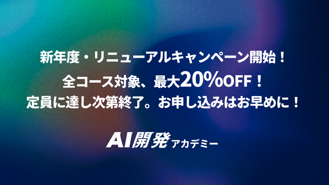 【プレスリリース】AI開発アカデミー、新年度、リニューアルキャンペーンを実施!