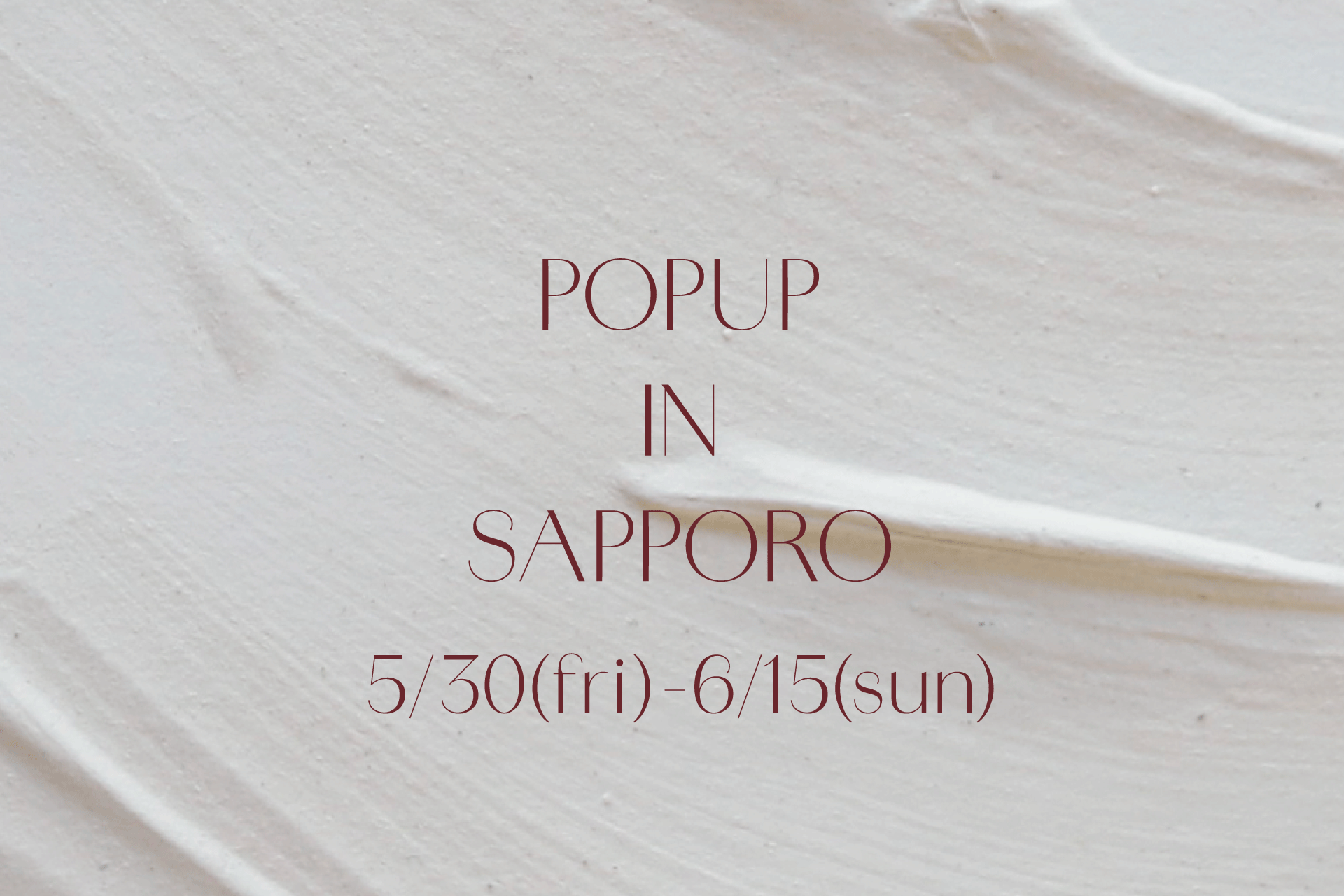 5月30日(金)~6月15日(日) 札幌ステラプレイス CENTER3F にてPOPUP開催が決定。期間中、限定アイテムの販売やポイントアップイベントをご用意。