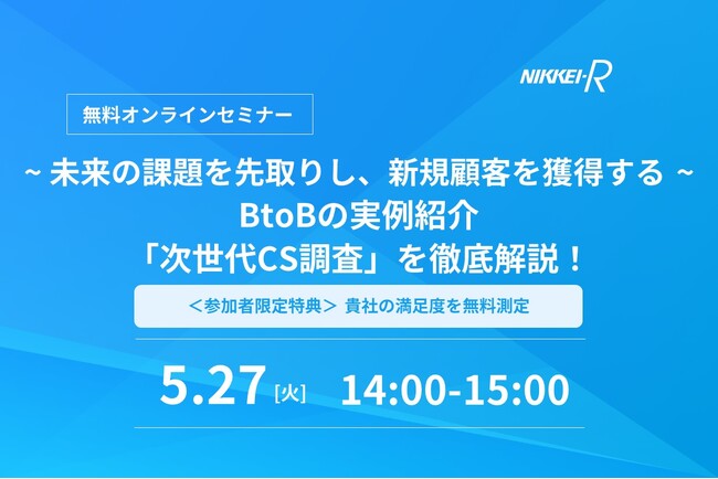 5/27開催ウェビナー|-未来の課題を先取りし、新規顧客を獲得する- BtoBの実例紹介 「次世代CS調査」を徹底解説!