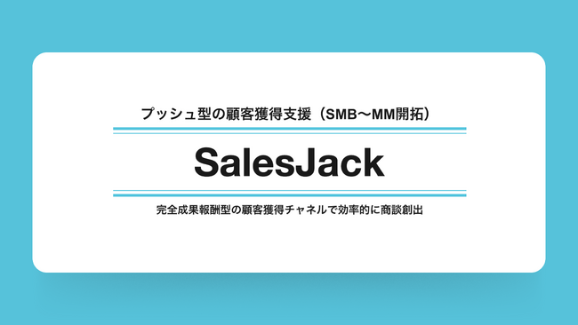 本サービスは、これまで中小~中堅企業開拓向けに提供してきた営業支援サービス『SalesJack』の派生モデルとして、“商談が発生したときのみ課金される”完全成果報酬型の営業支援サービスです。