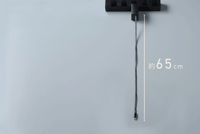 デスク奥のコンセントに設置してもちょうどいい長さです。