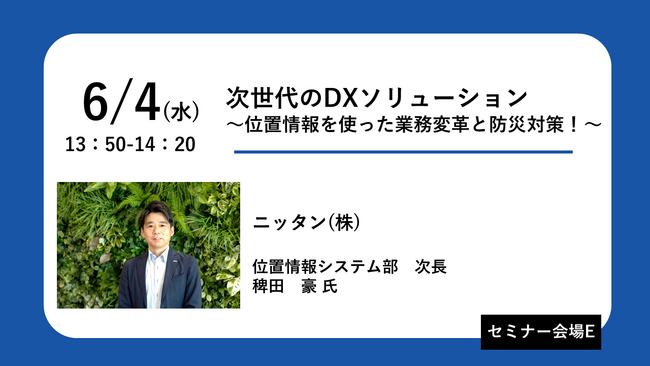 テーマ:次世代のDXソリューション ~位置情報を使った業務変革と防災対策!~日時:2025年6月4日(水) 13:50~14:20