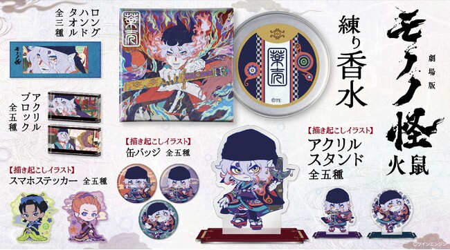 『劇場版モノノ怪 第二章 火鼠』より、「薬売り」をイメージした練り香水や印象的な劇中シーンをプリントした缶バッジ・アクリルグッズなど新商品が登場!