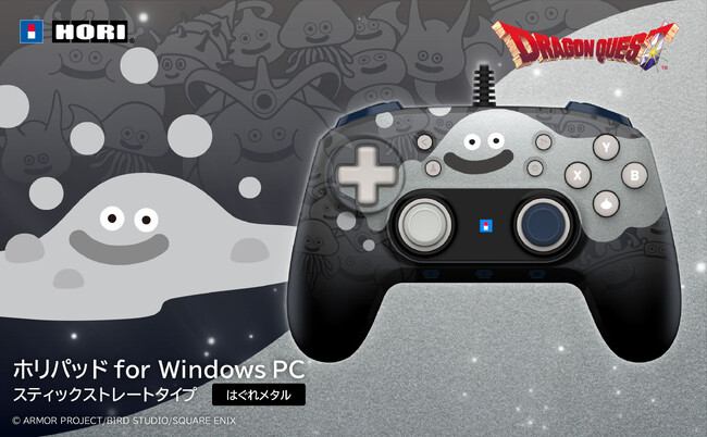 Windows PC 専用のホリパッドにドラゴンクエストのはぐれメタルがあらわれた!メタリックプリントにより、はぐれメタルの金属の質感を演出しています!