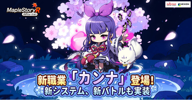ネクソンの完全監修による『メイプルストーリーR』にて、職業カードシステムに新職業「カンナ」がついに登場!また、新バトル「ボート衝突戦」や「モンスターライディング」システム、「エルナス試練」など新しいコンテンツが多数実装されました。