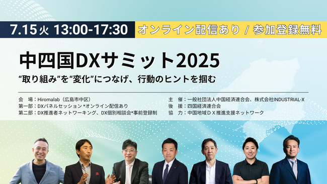データドリブン経営によって企業変革を支援する株式会社INDUSTRIAL-X(本社:東京都港区、代表取締役CEO:八子 知礼、以下当社)は、7月15日(火)に中四国エリアのDX促進を目的にしたビジネスカンファレンス「中四国DXサミット2025」を開催することをお知らせします。