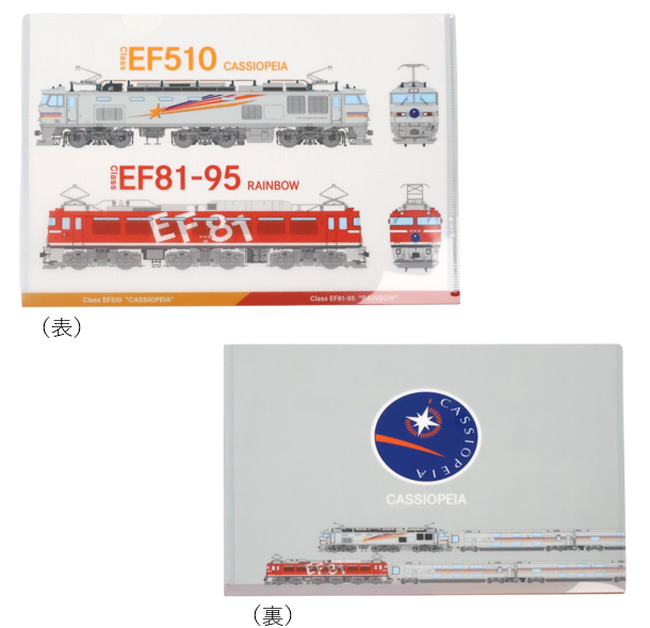 EF510・EF81・カシオペアの客車の顔がデザインされた特別なデザインのA4クリアファイル。詳細まで描かれたカシオペアの車両デザインが