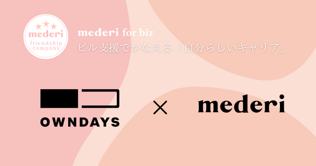 オンラインピル診療サービス『mederi Pill(メデリピル)』を運営するmederi株式会社(本社:東京都目黒区、代表取締役 坂梨 亜里咲 以下、mederi)は、法人向け福利厚生サービス『mederi for biz』を、 株式会社オンデーズ(本社:東京都品川区、代表取締役社長 海山 丈司)へ提供開始したことをお知らせします。